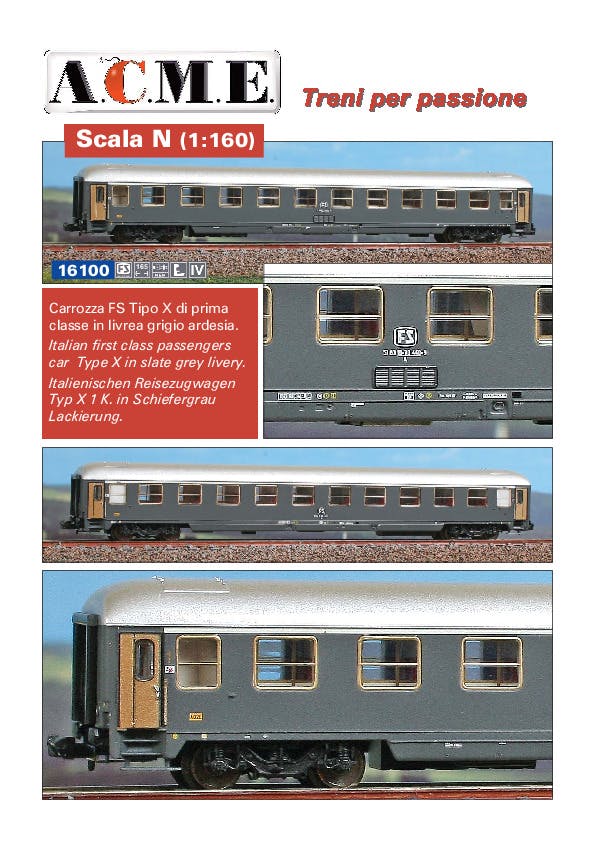 FS carrozza Tipo X di 1 cl. in livrea grigio ardesia ep.IV Altre versioni disponibili: art. 16110 2cl. art. 16111 2cl.