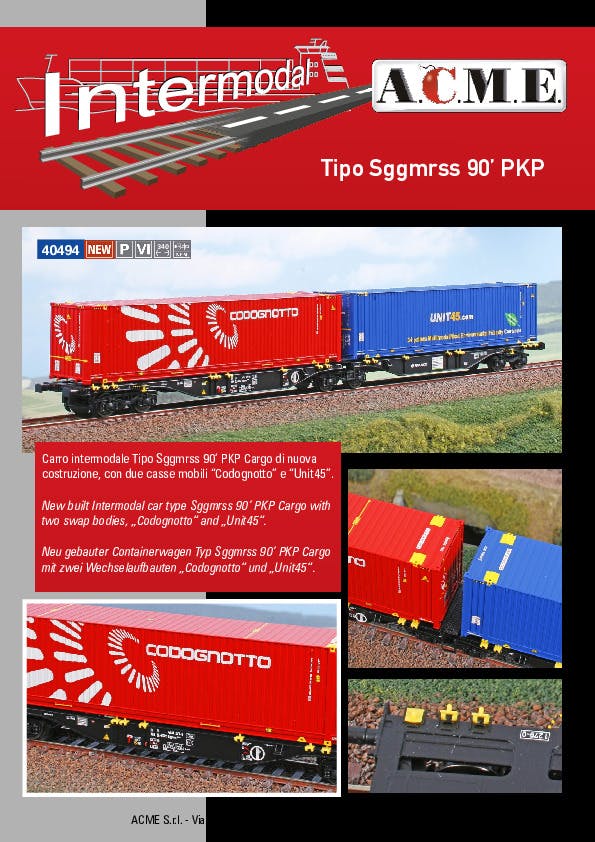 Carro intermodale Tipo Sggmrss 90’ Ermewa di nuova costruzione, con due casse mobili ''TAB Rail Road'' e ''Transalliance'', ep.VI