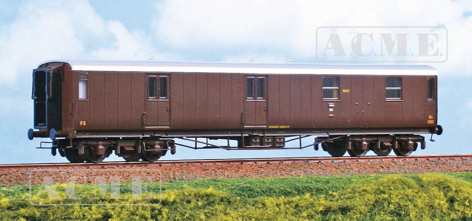 FS post office wagon with wooden case UIz 1.062 in brown livery as in service in the 1950s