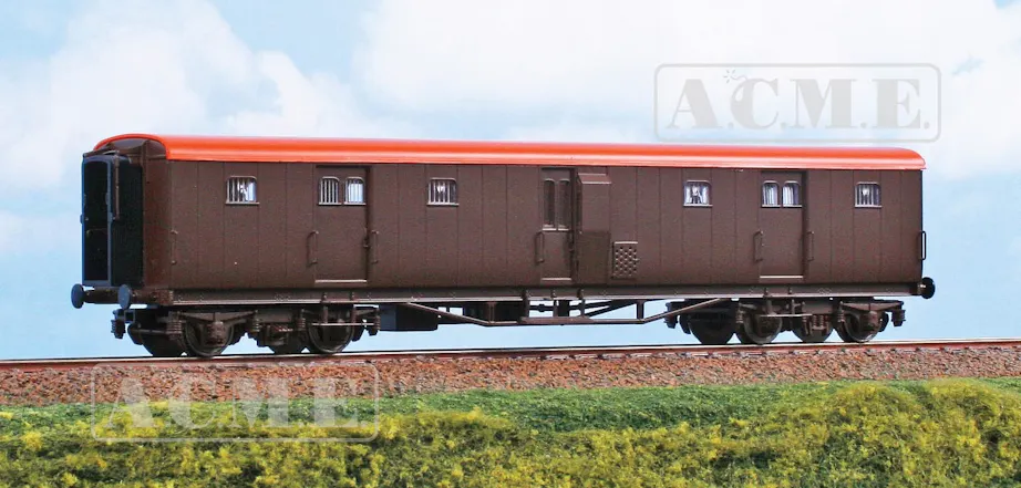 Acme 51250 Bagagliaio a carrelli e cassa in legno FS serie DZ 88.257 in livrea castano con tetto colorato in minio, come negli anni 50, ep.III