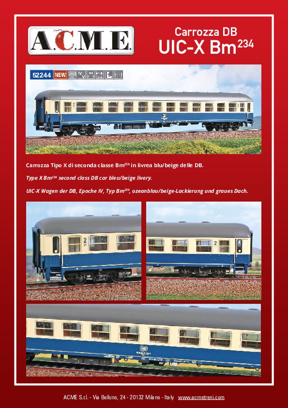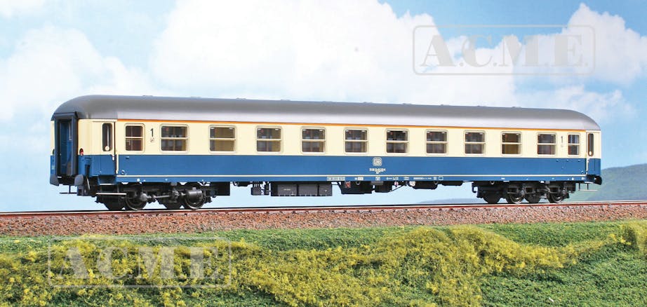 Type X Am203 first class DB car bleu/beige livery. UIC-X Wagen der DB, Typ Am203, ozeanblau/beige Lackierung und graues Dach.