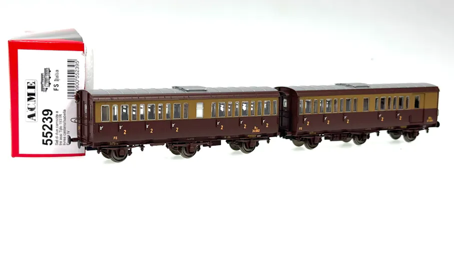 Set di due carrozze a tre assi del Tipo 1931R formato da una carrozza Ciy 34.000 ed una CDiy 67.000, entrambe di terza classe ed in livrea castano-isabella