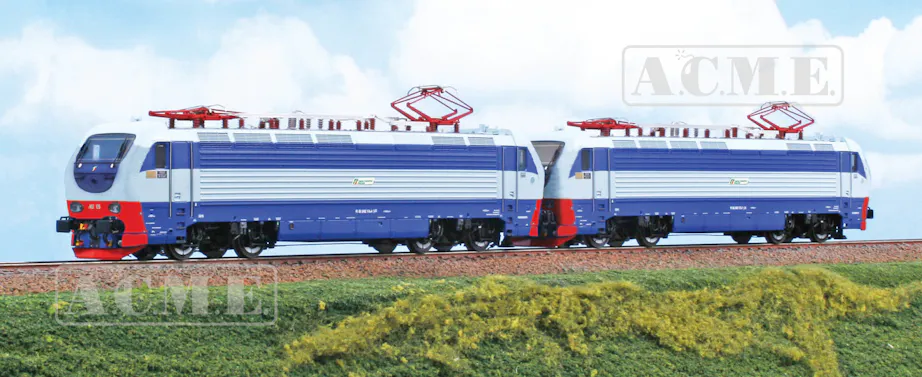 Acme 60647 Set di due locomotive elettriche E.402.128 e E.402.180 di TTI in livrea blu/azzurro, con fascia rossa sui frontali. Entrambi i modelli sono motorizzati e con luci