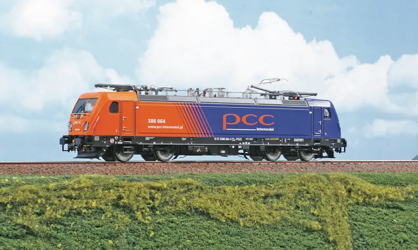 Electric locomotive TRAXX 388 064 in “PCC Intermodal” livery. E-Lok TRAXX 388 064 in “PCC Intermodal” Lackierung.