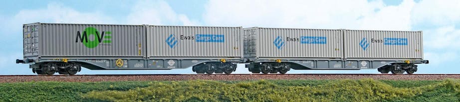 Set di due carri intermodal Tipo Sgnss Ermewa da 60 piedi caricati con bulk ''MOVE intermodal'' e bulk ''Ewals Cargo Care'', ep.VI