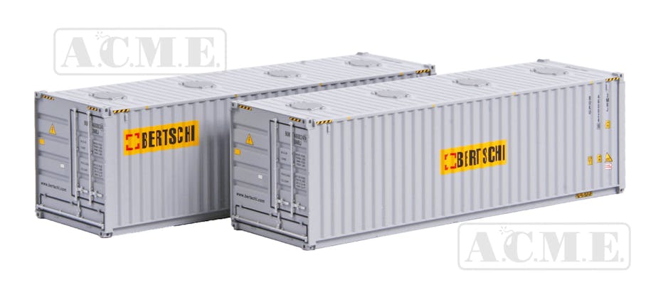 Set aus zwei 30‘ Bulkcontainern von „Bertschi“ mit unterschiedlicher Logoplatzierung