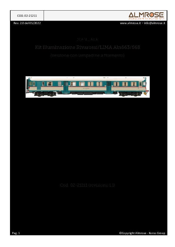 IMPORTANTE: Per le versioni Hornby Rivarossi più recenti con luci di marcia a led, utilizzare il kit specifico cod. 02-21212.