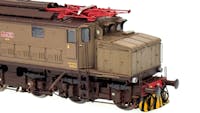 Locomotiva elettrica di III serie con cassa ricostruita, porte metalliche e finestrini esterni.