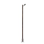 Lampione da stazione universale con palo in vero legno. Adatto anche per aree industriali. Presenta una replica della base in cemento.