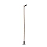 Lampione stradale quadrato universale con palo in vero legno. Adatto anche per aree industriali. Con una delicata base in metallo.