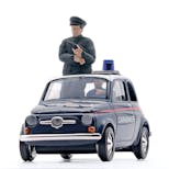 Così piccola, eppure è già un'auto della polizia! I due agenti sembrano quasi un po' sovradimensionati in confronto, ma bisogna ricordare che la Fiat non è esattamente enorme e le persone alte potrebbero avere qualche difficoltà a trovare un posto comodo all'interno.