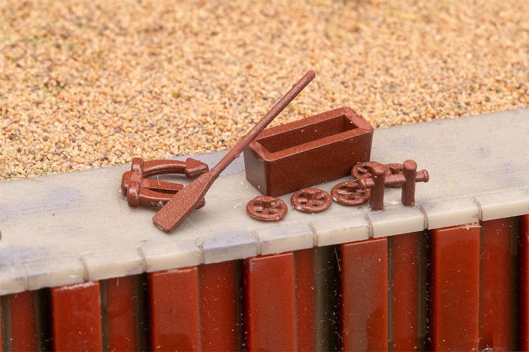 Accessori per il porto Piccoli dettagli per porti e navi: due pagaie, un'ancora, 12 bitte in legno e molto altro