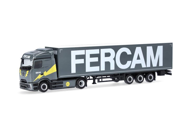 Semirimorchio telonato con trattore stradale Mercedes-Benz eActros 600 ProCabin Streamspace "Fercam" (Italia)