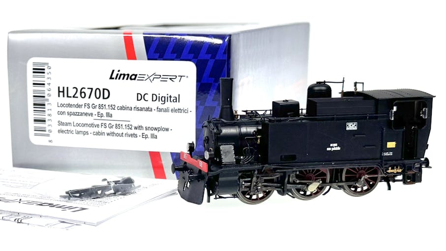 FS Gr.851 152 Locotender a vapore con vomere e fanali elettrici illuminati, decoder DCC Esu