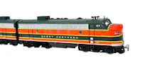 locomotiva General Motors EMD classe F7 verniciata e decorata per la Great Northern Railway (GN). Unità doppia composta da due unità A. Numeri di serie 309-A e 309-C. Schema di colori arancione rossastro e verde scuro.