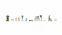 2 donne, donna con passeggino e bambino, 3 bambini che giocano, grande figura decorativa di "Superman", scooter e macchinina a pedali, 3 presentazioni di prodotti di palline, giocattoli e abbigliamento