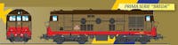 Locomotiva Diesel-elettrica D 341 2002 di prima serie delle FS, costruzione BREDA-REGGIANE. Con terzo fanale. Livrea Isabella e rosso segnale con fasce castano. Ambientazione epoca IV.