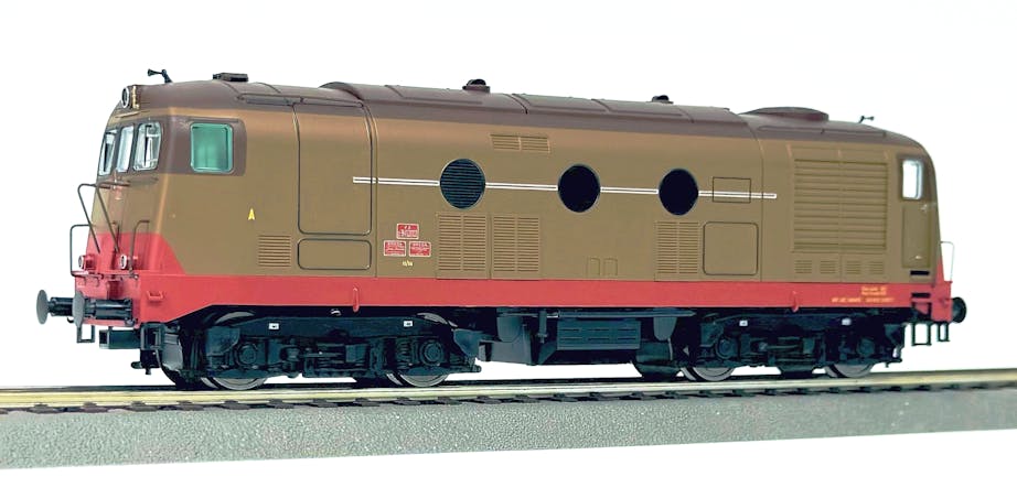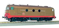 Locomotiva Diesel-elettrica D 341 2002 di prima serie delle FS, costruzione BREDA-REGGIANE. Con terzo faro. Livrea Isabella e rosso segnale con fasce castano. Ambientazione ep.IV. - DCC