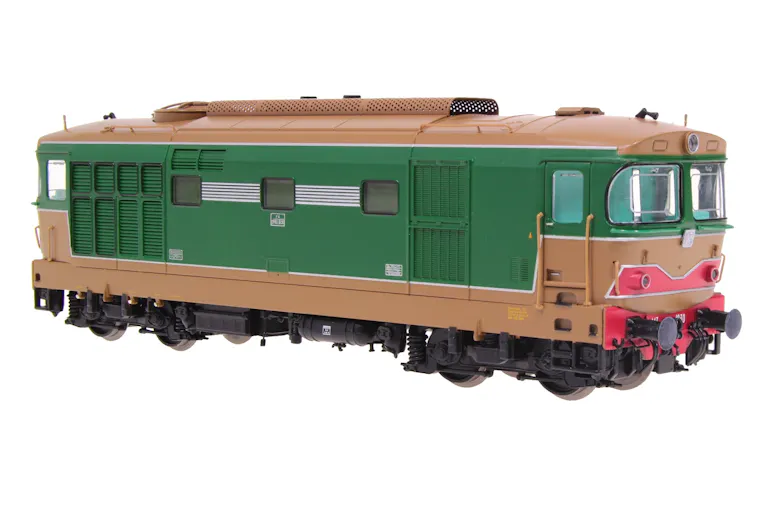 Locomotiva Diesel-elettrica D 443 1030 Fiat, con vetri curvi d’origine e modanature in rilievo, assegnata al deposito di Bari