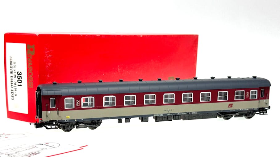 FS carrozza tipo 59 livrea rosso fegato beige di 2cl. - Rivarossi made in Italy