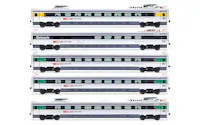 FFS, coffret de 5 voitures intermédiaires supplémentaires pour le train pendulaire à grande vitesse ETR 470, livrée argentée avec bande bleue, ép. V