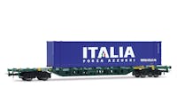 FS CEMAT, 4-achs. Containerwagen Sgns in grüner Lackierung, beladen mit 45’ Container „Italia”, Ep. V-VI FS CEMAT, wagon porte-conteneurs à 4 essieux Sgns, livrée verte, chargé un conteneur de 45’ « Italia », ép. V-VI FS CEMAT, vagón porta contenedores de 4 ejes Sgns, decoración verde, cargado con 1 contenedor de 45’ «Italia», ép. V-VI FS CEMAT, 4-axle container wagon Sgns, green livery, loaded with 45’ container “Italia”, period V-V