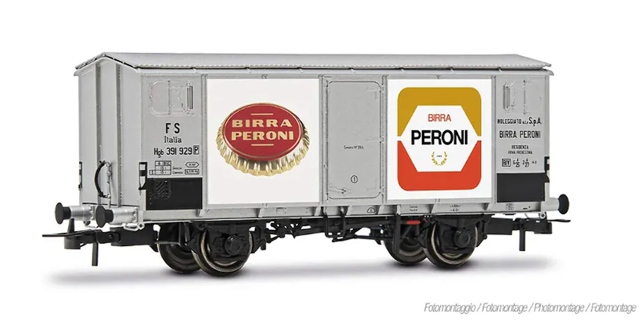 FS, 2-axle refrigerated wagon Hgb, metallic body, silver livery "Peroni"