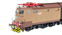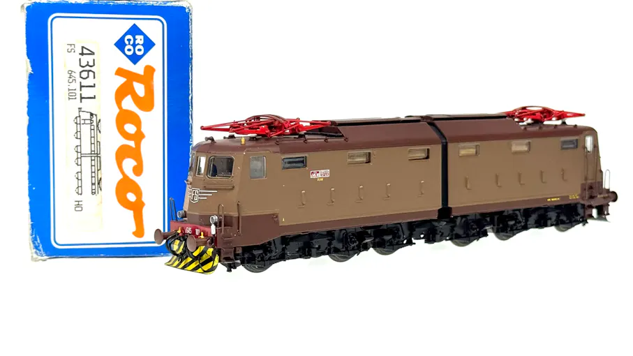 FS locomotiva elettrica E.645 101 con baffo, livrea castano isabella Dep. Loc. Milano, ep.IV