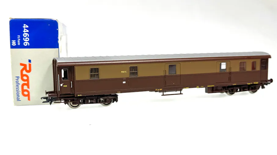 FS carrozza postale Uz1307 livrea castano isabella con illuminazione interna a Led