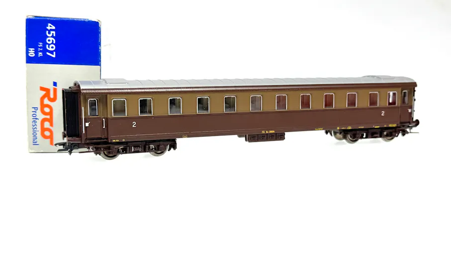 FS carrozza di 2 cl. tipo Bz 30694 livrea castano isabella con illuminazione interna a Led
