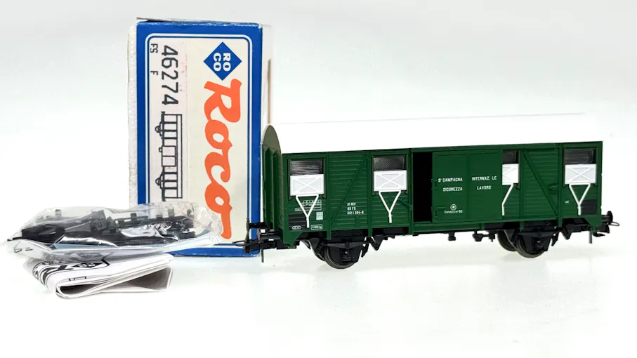 FS carro chiuso tipo HGs a tetto tondo livrea verde 9° campagna internazionale sicurezza sul lavoro, ep.V