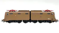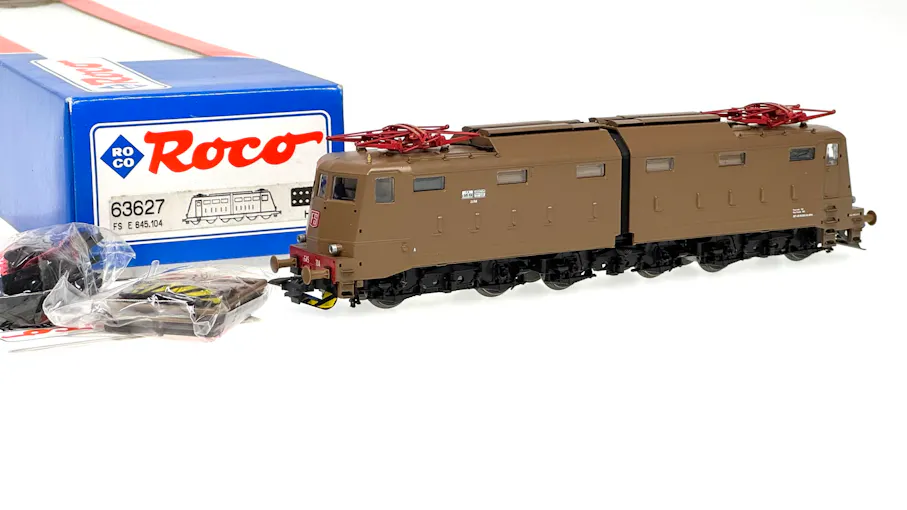 FS locomotiva elettrica FS E645 104 livrea isabella con fregio FS rosso Dep. Loc. Reggio C., ep.V