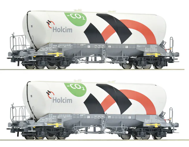 Set di 2 carri silo, tipo Uacns, di Holcim (Co2), ep.VI ■ Modello con maniglie sporgenti ■ Griglie perforate