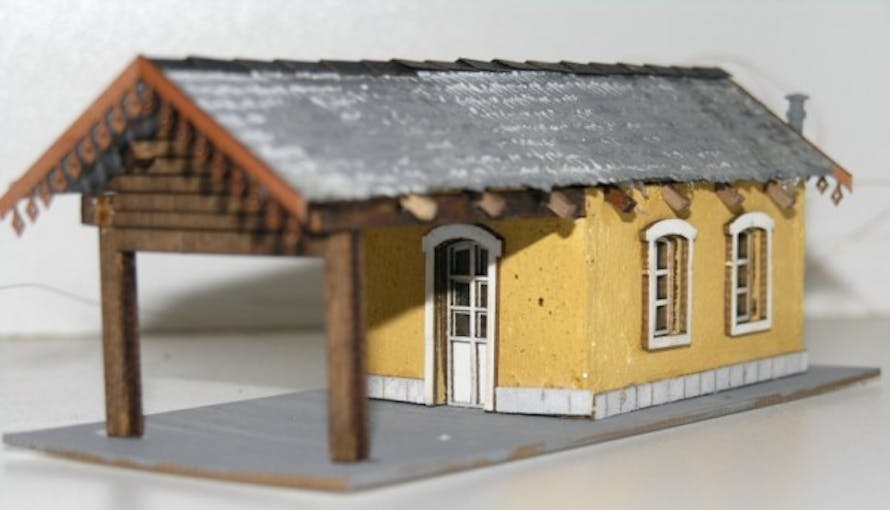 Garetta con tettoia di carico, in KIT. LASER CUT, ILLUMINATA. Misure in mm: 150x65x60