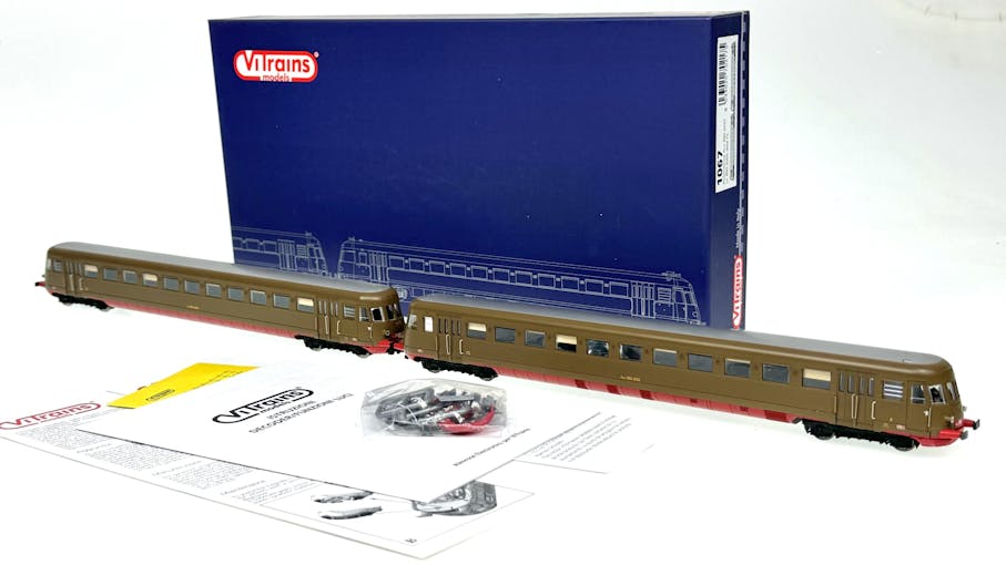 FS Set automotrice ALn 990.3032 + Ln 990.3005 set due unità OM livrea isabella con telaio rosso. Ep.III-IV - DCC