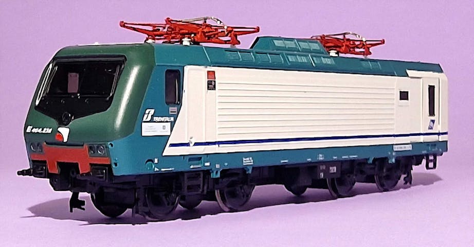 Caratteristiche del modello: fanali illuminati con led collegati a micro connettori, luci bianche o rosse secondo il senso di marcia, presa corrente su tutte le ruote,presa per decoder PluX 22, pantografi FS 52/92, motore a 5 poli, trasmissione cardanica sui due carrelli, assali d'ottone torniti e nichelato, telaio in metallo, carrelli particolareggiato e perfettamente in scala, estrema finezza nella verniciatura e tampografia, particolari aggiuntivi molto realistici.